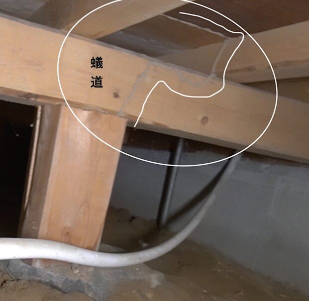 床下の調査の際にシロアリの蟻道を発見(床下点検口から確認できる範囲で調査を行います。)