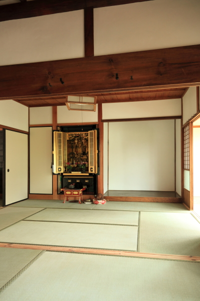 母屋は築80年の古民家で、建物は一般に見受けられる傾きがあるが