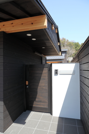 長いアプローチの終点が玄関となります。