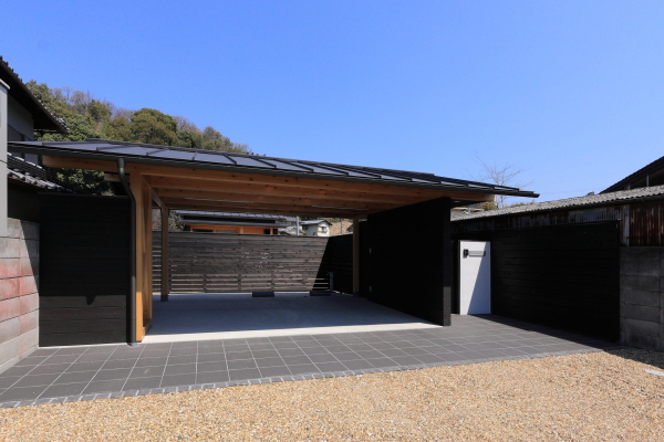 屋根付き車庫内部です。 オープン空間となっており、住まい手は雨の日でも