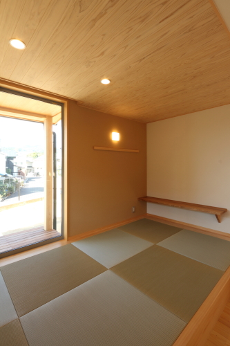 道路上高台に建つシンプル・ナチュラルな家